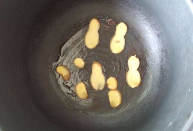 2、电饭锅里倒入1汤匙食用油,放进姜片抹匀油~